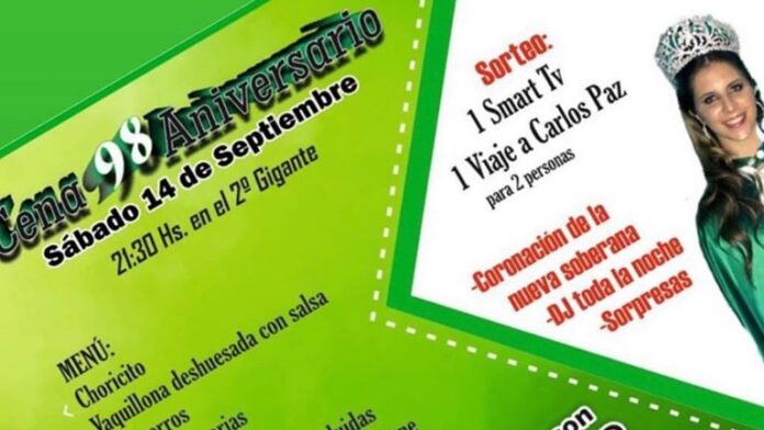 Además, habrá baile durante toda la noche, con DJ en Vivo y sorpresas. También, se sorteará un Smart TV y un viaje a Villa Carlos Paz para dos personas.