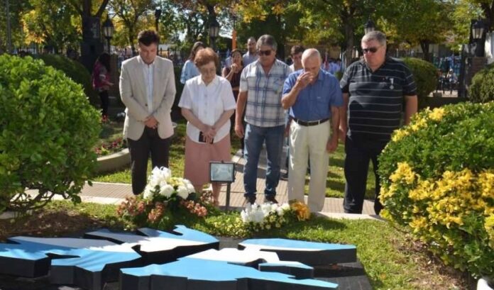 Seguidamente, el párroco de la iglesia Católica leyó una oración religiosa y dio lugar a la entrega una ofrenda floral en el monumento de la plazoleta y un respetuoso y sentido silencio para recordar a las víctimas que ya no están.