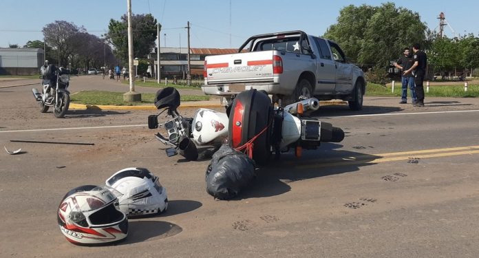 Allí y por causas que se desconocen, colisionaron una camioneta y una moto.