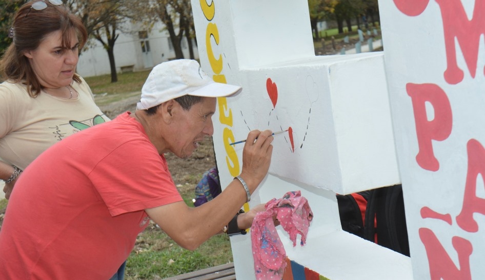 La pintura de las letras estuvo a cargo de la artista local Viviana Masso y la comunidad se pudo acercar para ayudar y dejar su huella.