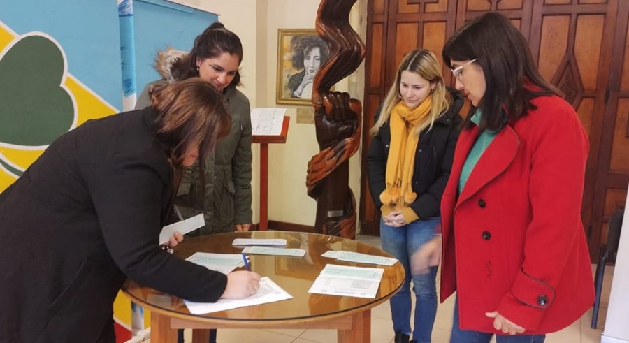 En el Centro Cultural Cervantes, con la presencia de la intendente Natalia Sanchez; Julieta Fenoglio y Patricia Sánchez, del Área de Educación y los ediles Nadia Doria y Guillermo Trógolo; los beneficiarios recibieron la primera de seis cuotas.