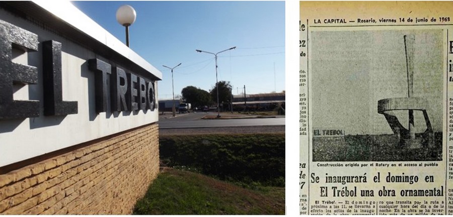 El Trébol, donde la calzada ya estaba prácticamente finalizada en su recorrido rodeando el centro urbano, quedó vinculado a la red nacional de carreteras hacia 1966, y el ingeniero Adalberto Blödorn, titular de la empresa que estaba llevando adelante la segunda etapa de pavimentación urbana (50 cuadras), iniciada el 4 de mayo de 1965, sugirió al Rotary Club la idea de construir un señalamiento frente a la que en aquel entonces era el principal ingreso al pueblo.