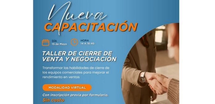 Se trata del taller “Cierre de venta y negociación”, especial para emprendedores, equipos comerciales y quienes quieren cerrar más ventas con éxito.