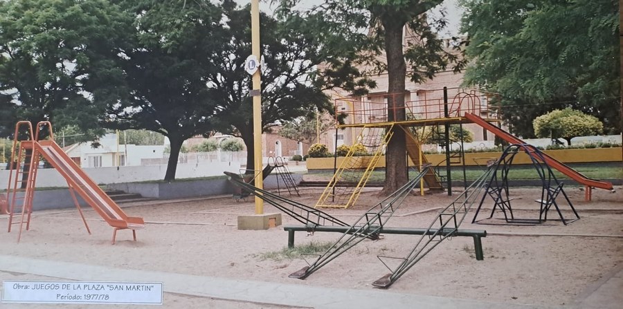 Entre los juegos instalados, se encontraban hamacas, sube y baja y pasamanos -algunos de los cuales aún permanecen-, además de una estructura didáctica que rodeaba el gran árbol de la plaza y que fue muy utilizada durante años hasta que el municipio decidió reemplazarla por cuestiones de seguridad.
