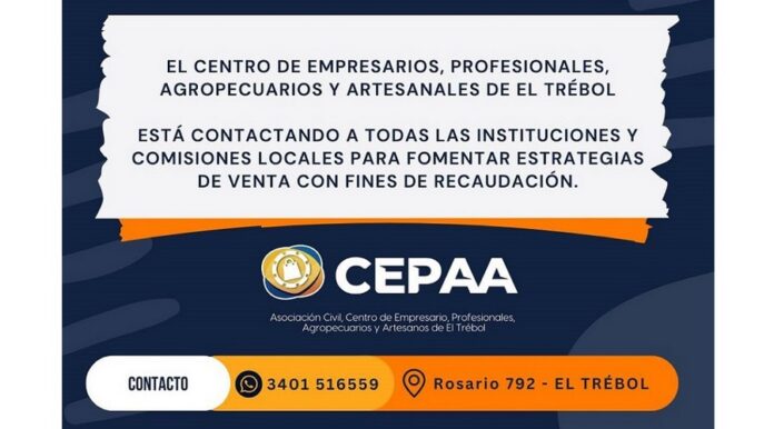 El Centro de Empresarios, Profesionales, Agropecuarios y Artesanales de El Trébol (CEPAA), está contactando a todas las instituciones y comisiones locales para fomentar estrategias de venta con fines de recaudación.