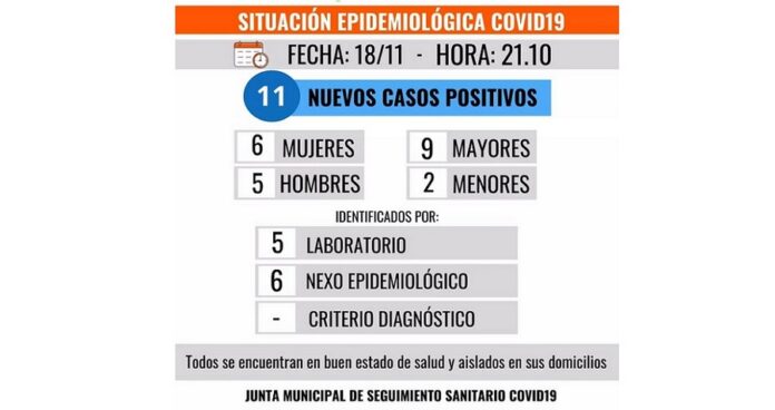5 casos fueron identificados por laboratorio y 6 por nexo epidemiológico.