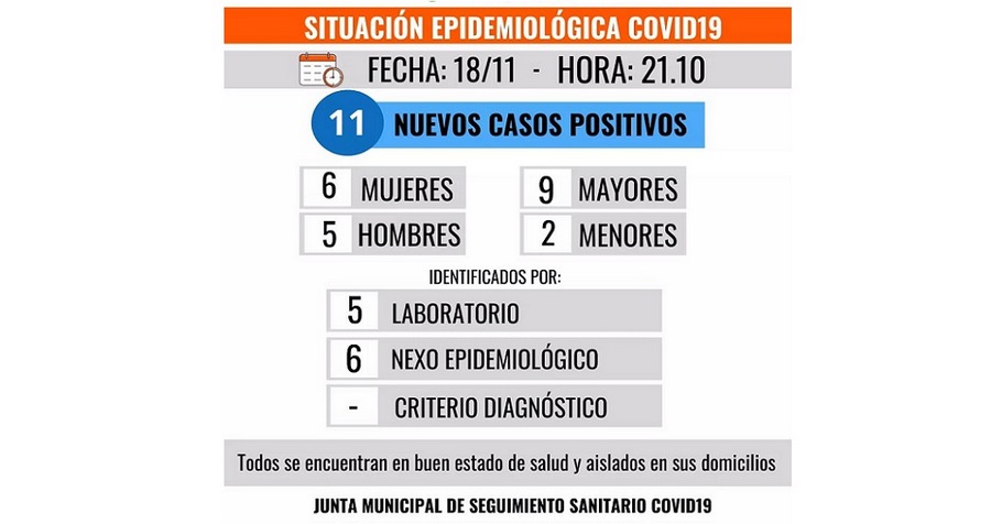 De los 11, 6 mujeres y 5 hombres, 9 son mayores de edad y 2 menores. Todos se encuentran en buen estado de salud y aislados en sus respectivos domicilios.