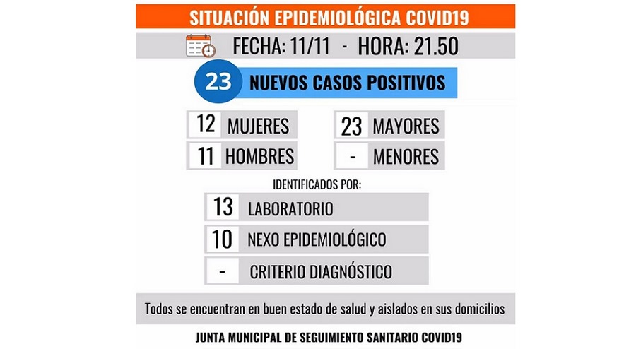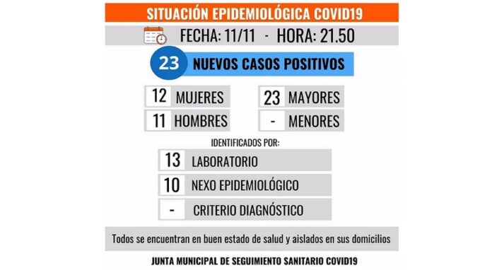 13 casos fueron identificados por laboratorio y 10 por nexo epidemiológico.