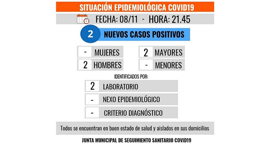 Se trata de dos hombres, mayores de edad, quienes se encuentran en buen estado de salud y aislados en sus respectivos domicilios.