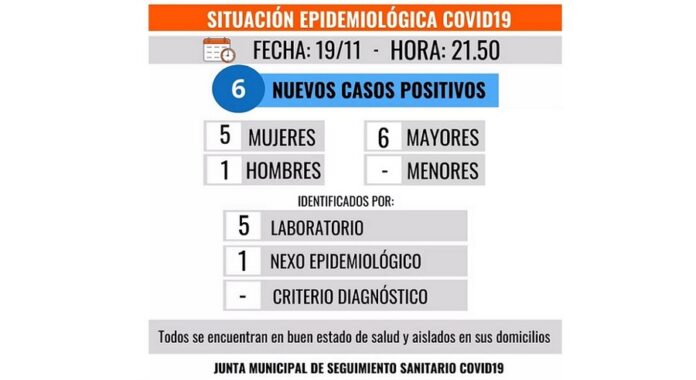 Cabe aclarar que, con estos seis, son 586 los casos confirmados en la ciudad. Teniendo en cuenta que 354 pacientes ya fueron dados de alta y que 10 fallecieron, son 222 los que continúan activos.