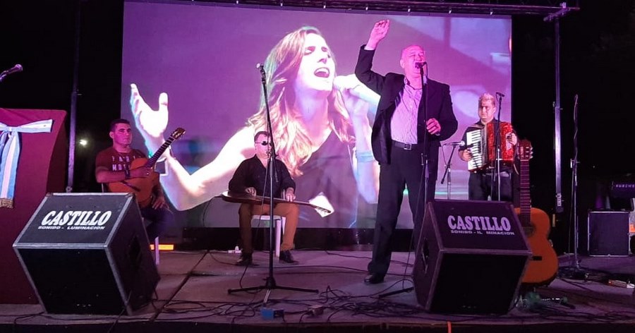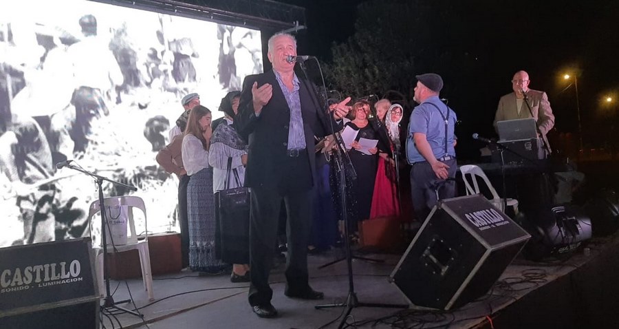 El cantante, músico y compositor rafaelino deleitó al público con sus primeros temas y después, junto al Coro y músicos de la Escuela Municipal, interpretó una brillante creación bajo el nombre de “La colonización agrícola en la Argentina”.