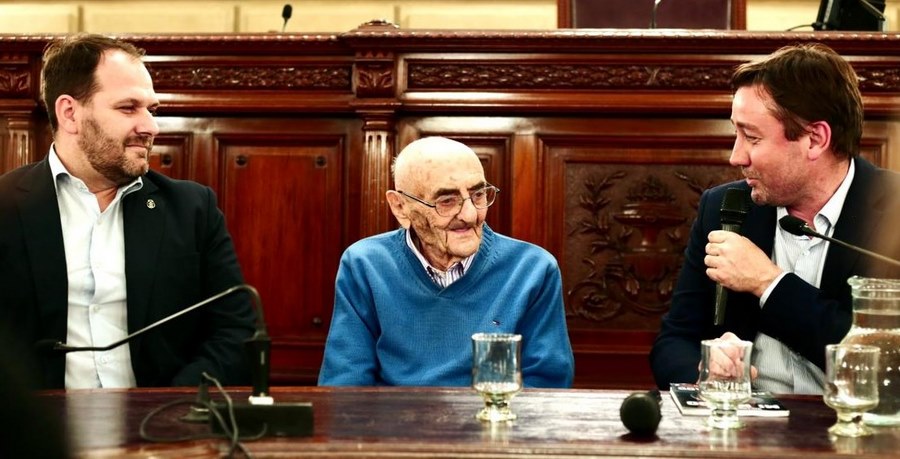En un emotivo acto realizado en el recinto de sesiones de la Cámara de Senadores de la Provincia de Santa Fe, el senador Esteban Motta rindió homenaje al Sr. Víctor Hugo Chiarlo, fundador de la histórica fábrica de bolitas “Tinka”, de la ciudad de San Jorge.