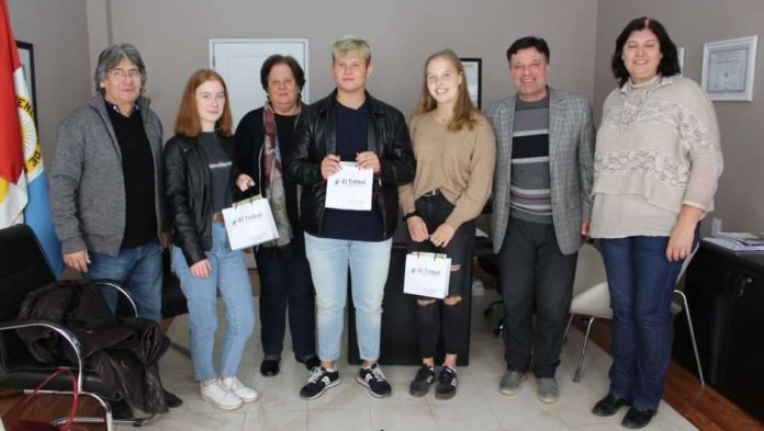 En el despacho de la máxima autoridad local, se hicieron presentes los adolescentes (Dos de Alemania y uno de Italia) y las consejeras rotarias Marisa Galván y Liliana Bovina.