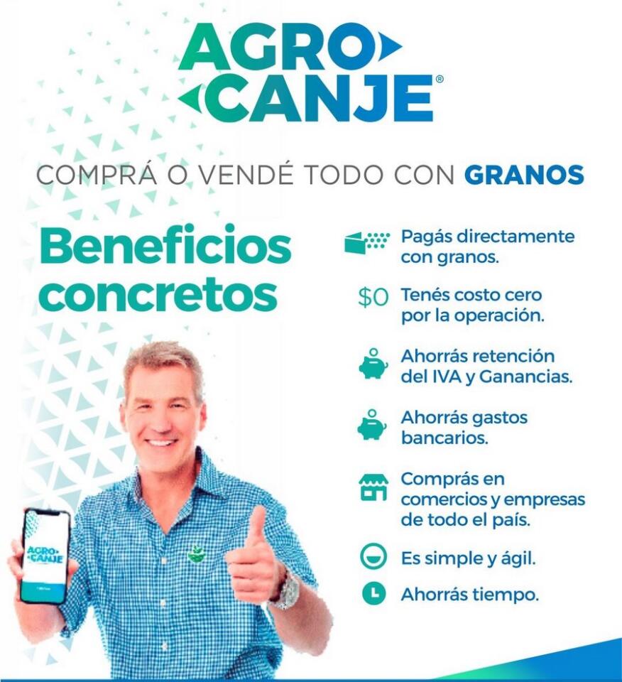 Comprar con “Agrocanje” es tan simple, como hacerlo con cualquier otra forma de pago, sólo que mucho más conveniente como productor agropecuario porque obtenés los beneficios de este tipo de operación haciendo rendir tus granos mucho más.