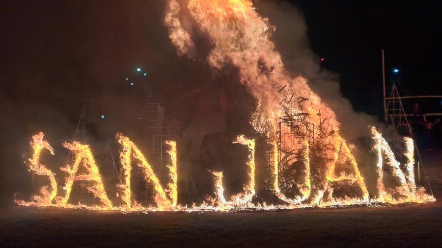 Cada año, la fogata propone nuevos atractivos en el encendido. En esta oportunidad, fue a través de impactantes letras gigantes de «San Juan» adelante de la gran pira, que se encendió al caer la noche. Los muñecos de las instituciones se colocaron y por la votación popular, por tercer año consecutivo, fue salvado el de la Escuela Media Nº 210.