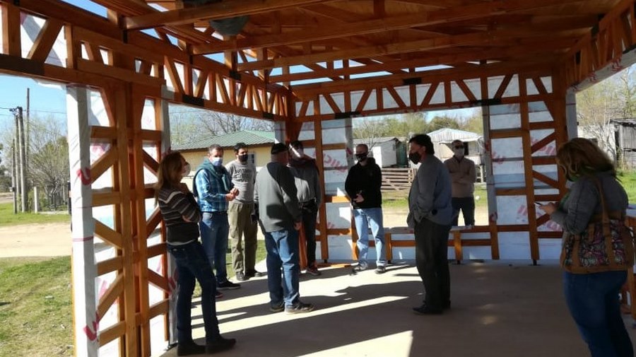 En esta ocasión, se pudo visitar el taller de la Cooperativa donde se construyen las piezas del sistema industrializado tipo “wood frame”, similar al “steel frame”, pero de madera. Es decir, se trata de un entramado de madera estructural, que es posible combinar con otros materiales para realizar su terminación.