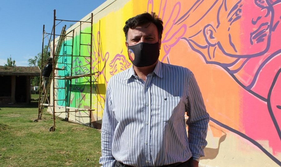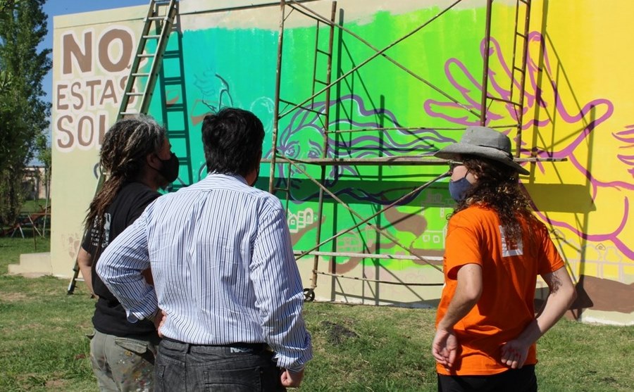 Por su parte, en la mañana del martes, el intendente Fernando Almada y el director de Desarrollo Comunitario, Carlos Lépore, visitaron el mural y dialogaron con los hacedores de esta magnífica obra, en momentos en que éstos le daban los últimos retoques.