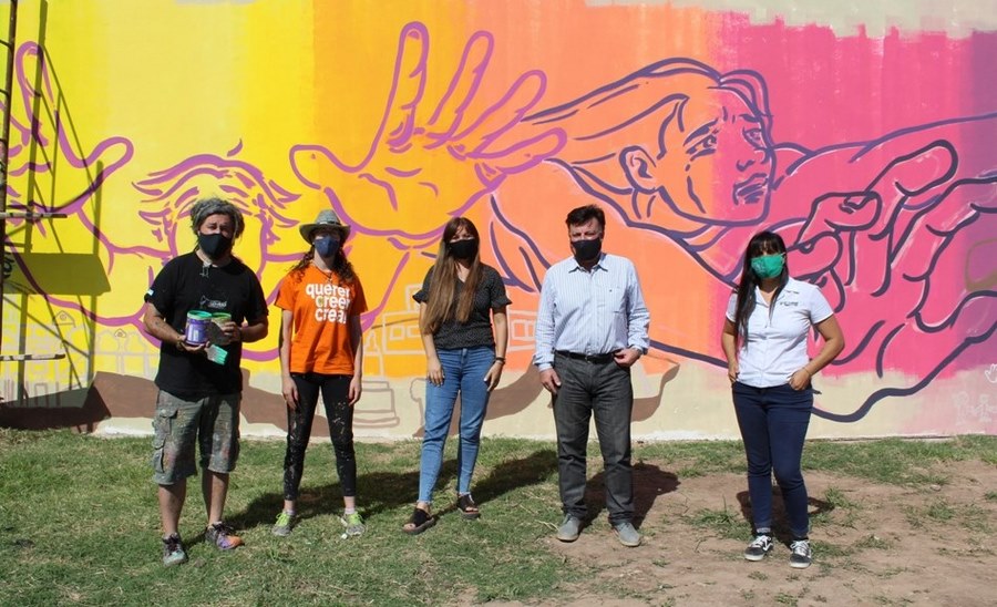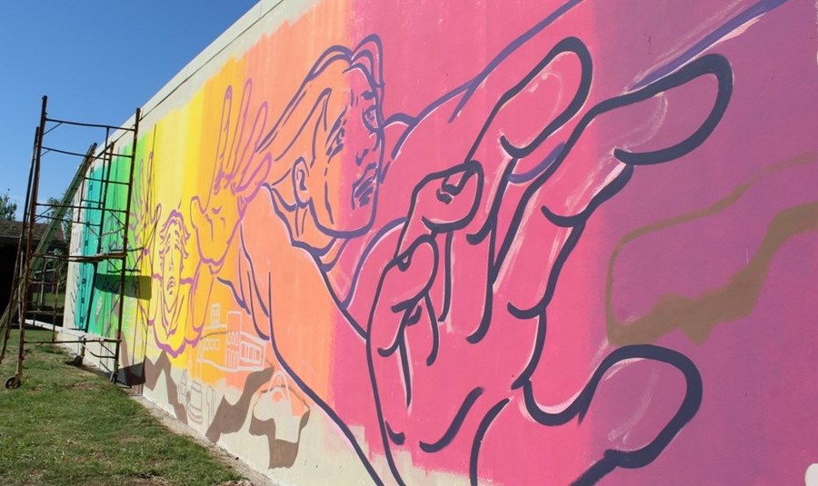 Los muralistas Lisandro Urteaga y Marlene Zuriaga llevaron adelante una impresionante obra de arte en la pared oeste del CIC, con la participación de la comunidad que se animó y se sumó a dar sus pinceladas.