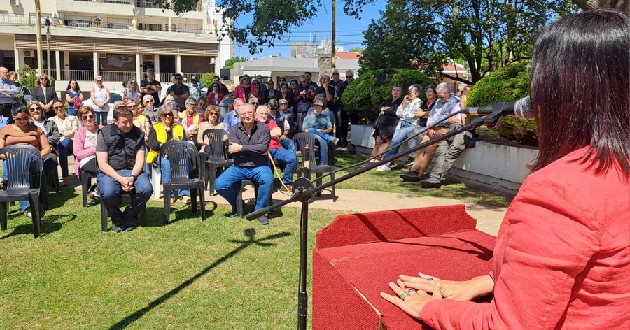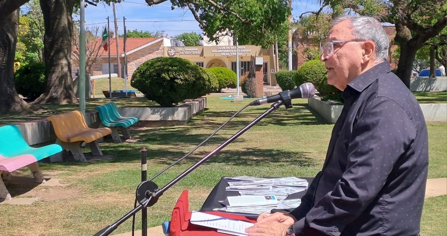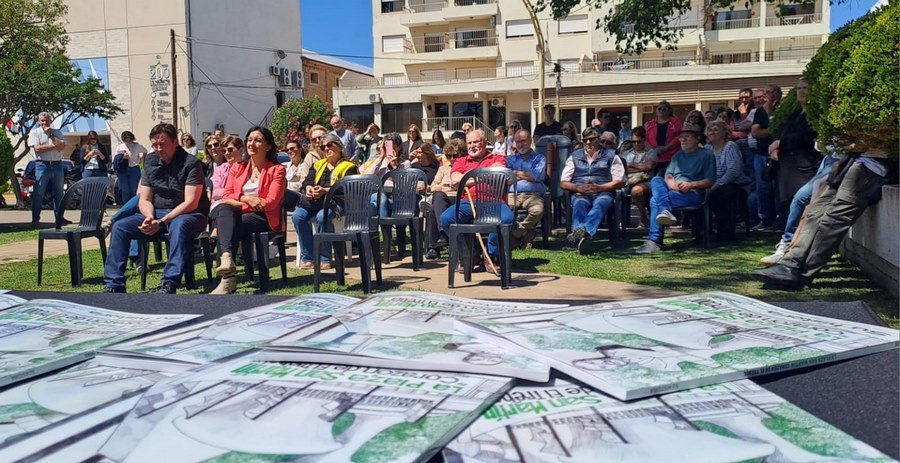 Durante la ceremonia, el director de Cultura de la Municipalidad, Francisco Díaz de Azevedo, expresó: “Cómo no escribir sobre un espacio que fue testigo de tantas cosas, como la construcción de la Parroquia y el Teatro Cervantes. Un espacio que fue cancha de fútbol, lugar de actos y de juegos. Todos tenemos recuerdos aquí”.