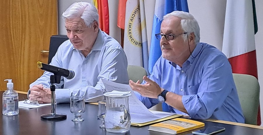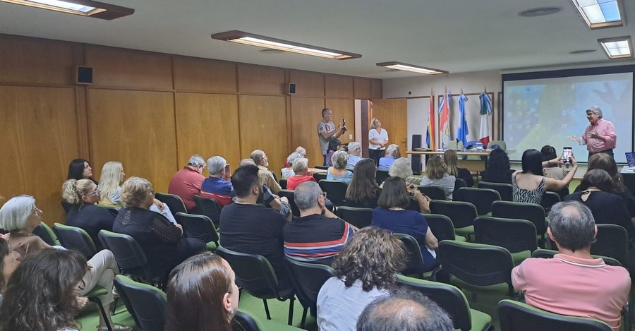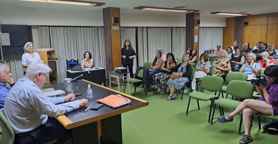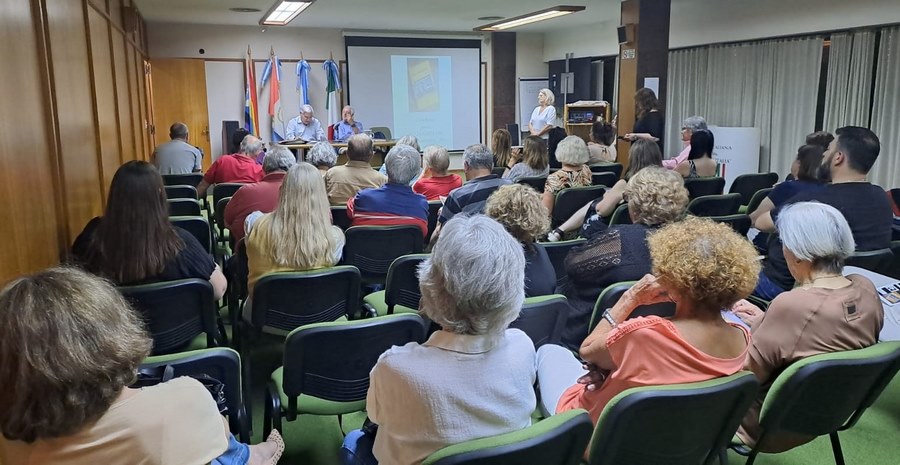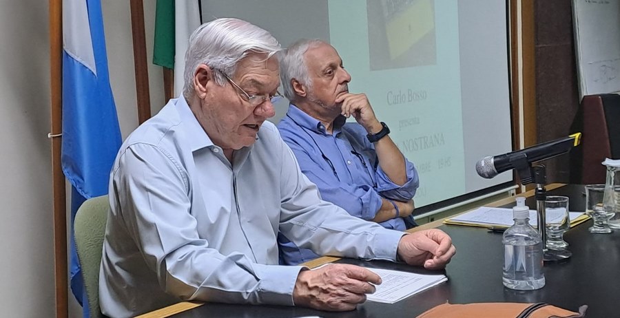 Ante una sala poblada y luego de la proyección de un video realizado por Jorge Meynet sobre la base de un reportaje que realizara en 1994 a Benedetto “Tito” Bosso, el visitante llevó adelante una entretenida exposición sobre las inquietudes que lo llevaron a venir a la Argentina en marzo de 2022 “tras las huellas” -como dice el subtítulo de su libro- de su tío-bisabuelo Orazio Bosso, el único integrante de su familia que a fines del siglo XIX emigrara a América.