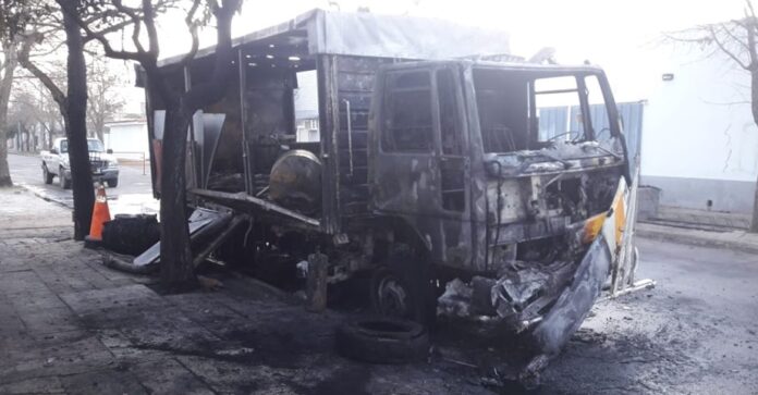 Alrededor de las 4 de la mañana, bomberos fueron convocados para intervenir en un camión incendiado que estaba estacionado frente a un domicilio de calle Pueyrredón al 1100 de la ciudad de San Jorge.