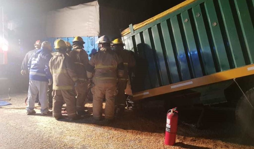 El choque tuvo lugar en la mano que va hacia el sur y en jurisdicción de Oliveros. El muchacho que conducía el vehículo cargado quedó atrapado en la cabina y los Bomberos Voluntarios de Oliveros trabajaron durante tres horas para sacarlo con vida.