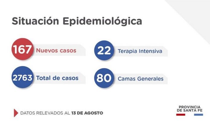 El ministerio de Salud de Santa Fe, a través de la Dirección Provincial de Epidemiología, informa a la población que este jueves se han confirmado 167 casos nuevos de COVID-19 en el territorio provincial.